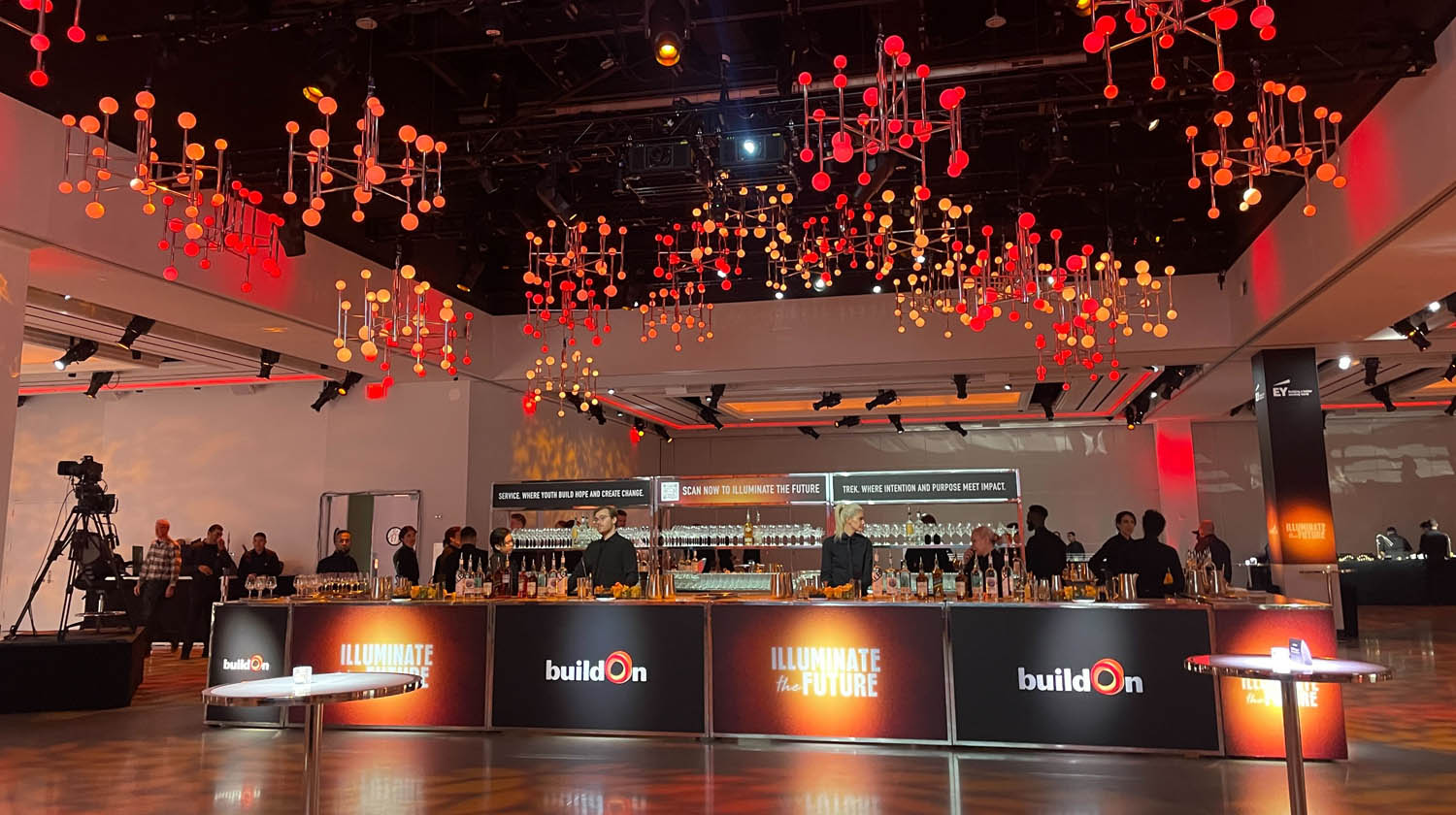 SFG’s intimate knowledge of nonprofit galas and their goals means we’re excellent partners for getting the right show at the right budget. We worked with buildOn to understand their most important aspects of the show– things like captivating executive presentations, seamless AV production, and stunning visuals to keep the crowd focused. The CEO is a storyteller, and in order for his story to resonate with the audience he needs a seamless AV experience- beautiful and easy to see photography on display, crystal clear audio, and flawless tech support. And then we executed on it. We loaded in our equipment the morning of the event and set up the lights, projection, and audio before guests started rolling in. We coordinated with the venue’s exclusive vendors to ensure that their team was up to speed and we provided a small team consisting of a Show Caller and Stage Manager to run the show. The programming consisted of keynote speeches and entertainment over the years by “Just Sam” Diaz, Lucky Chops, and Alex Boyé, and activations that kept the energy high all evening.