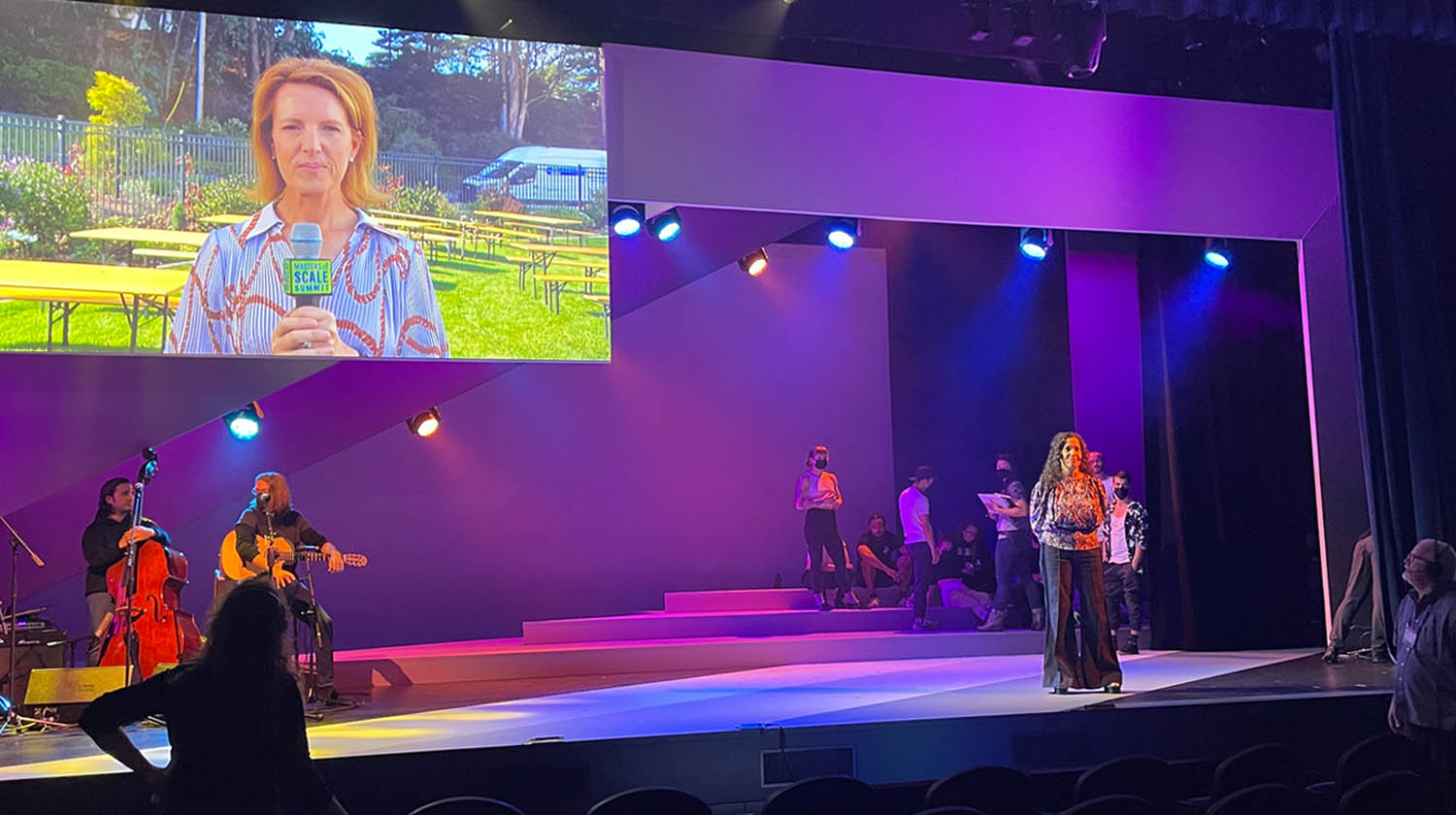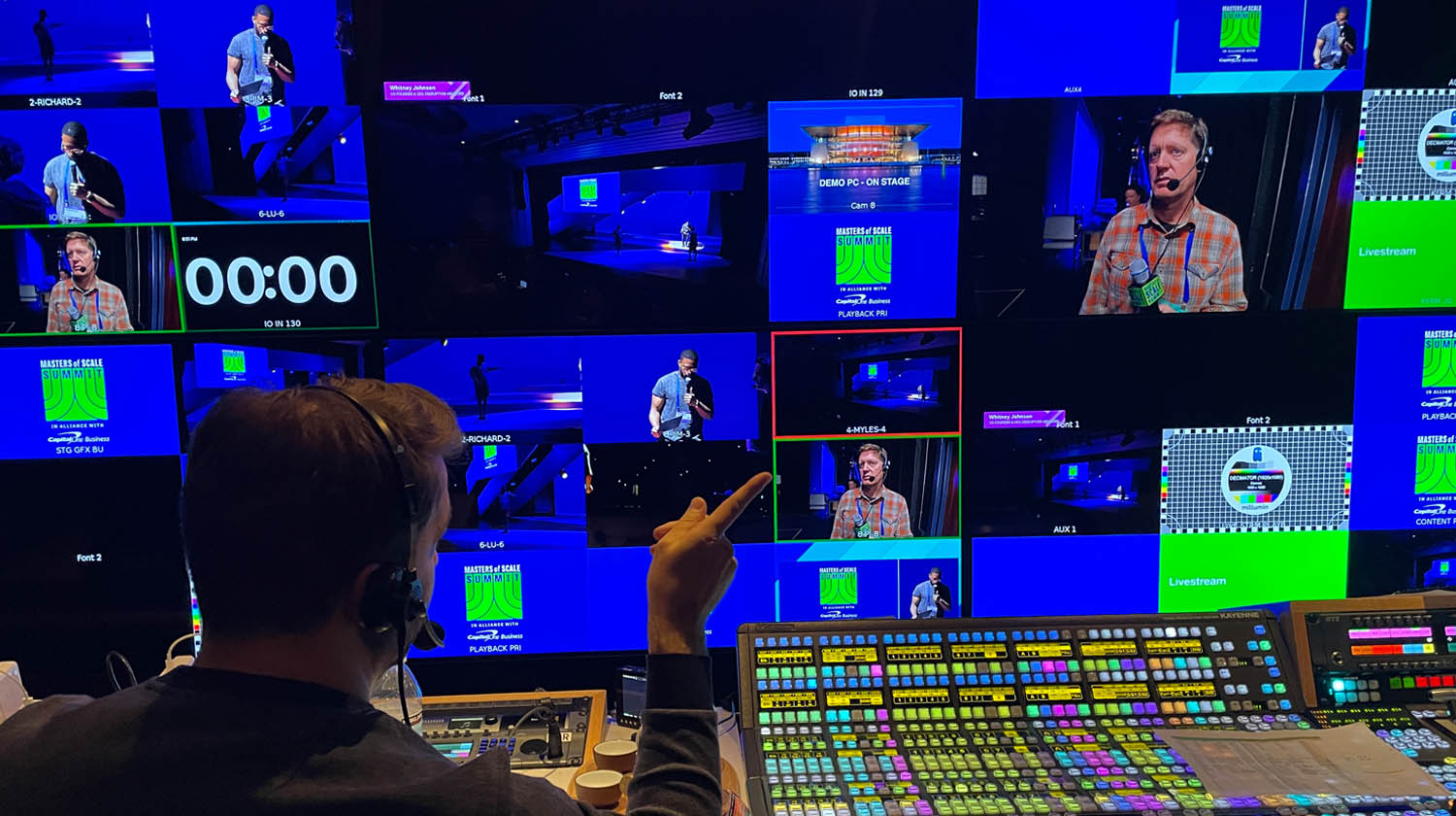 For the inaugural Masters of Scale Summit, SFG was responsible for capturing and broadcasting a diverse and complex stage production using a theatrical and cinematic approach. We executed 7-camera coverage of the stage program including use of a jib and roaming camera, sourced and re-configured a broadcast truck so that it would run a cinematic 23.98 frame rate, collaborated with a virtual host to capture behind-the-scenes interviews, provided takeaways for the virtual audience, and lift up the audience’s voice before and after sessions, integrated with event management and stage teams to execute livestream and provide camera feeds for use in the venue, and delivered a robust cache of video recordings that included isolated camera and multi-track audio.